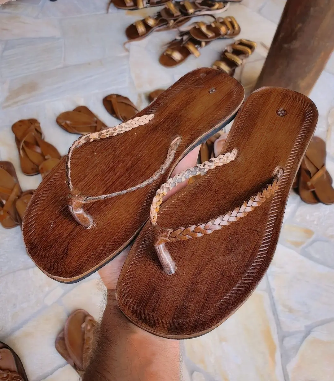 Nossos modelos de chinelos e rasteirinhas tem sido de grande sucesso na moda atual, onde o estilo "retrô" e "rústico" tem se destacado cada vez mais. Feitos artesanalmente em couro natural e rústico e com solado em pneu que traz conforto, maior durabilidade e autenticidade da marca. O modelo é baseado nas conhecidas sandálias do Nordeste ou "Nordestinas". Podendo ser usado em diferentes ocasiões e com looks bem casuais como calças de sarja dobradas, shorts, bermudas, saias, combinadas com camisetas mais soltas, blusas de linho e tecidos mais finos e leves, são perfeitos para dias quentes e frescos.